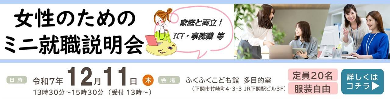 受付中★12/11(木)女性のためのミニ就職説明会【ICT・事務職】