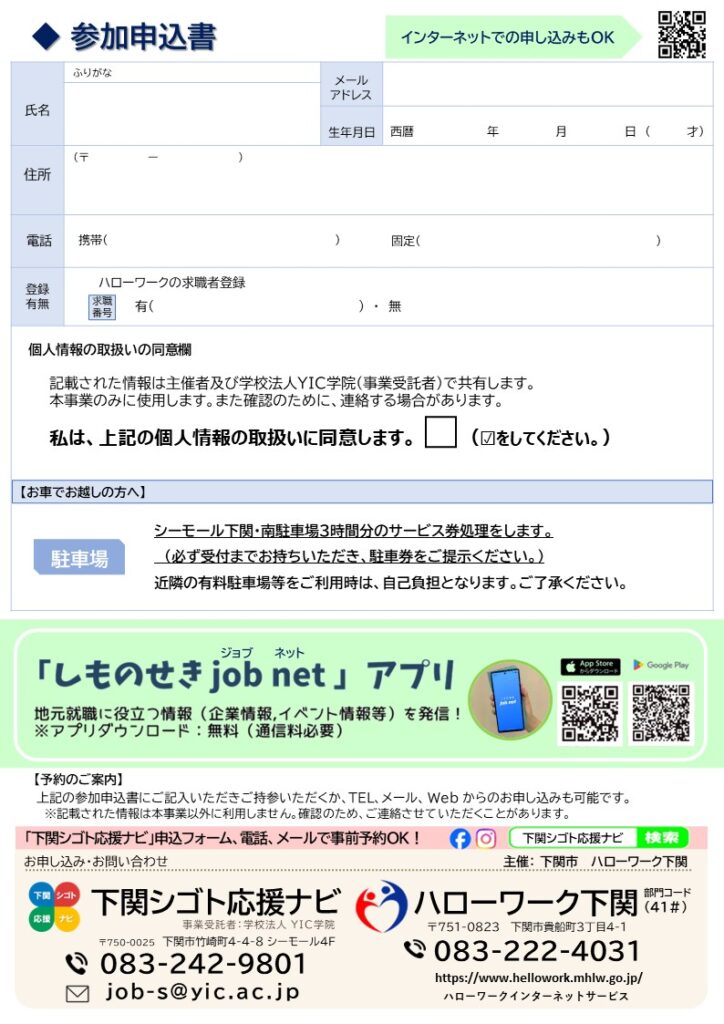 ※ ハローワーク下関で事前に求職登録が必要となりますので、ご協力ください。